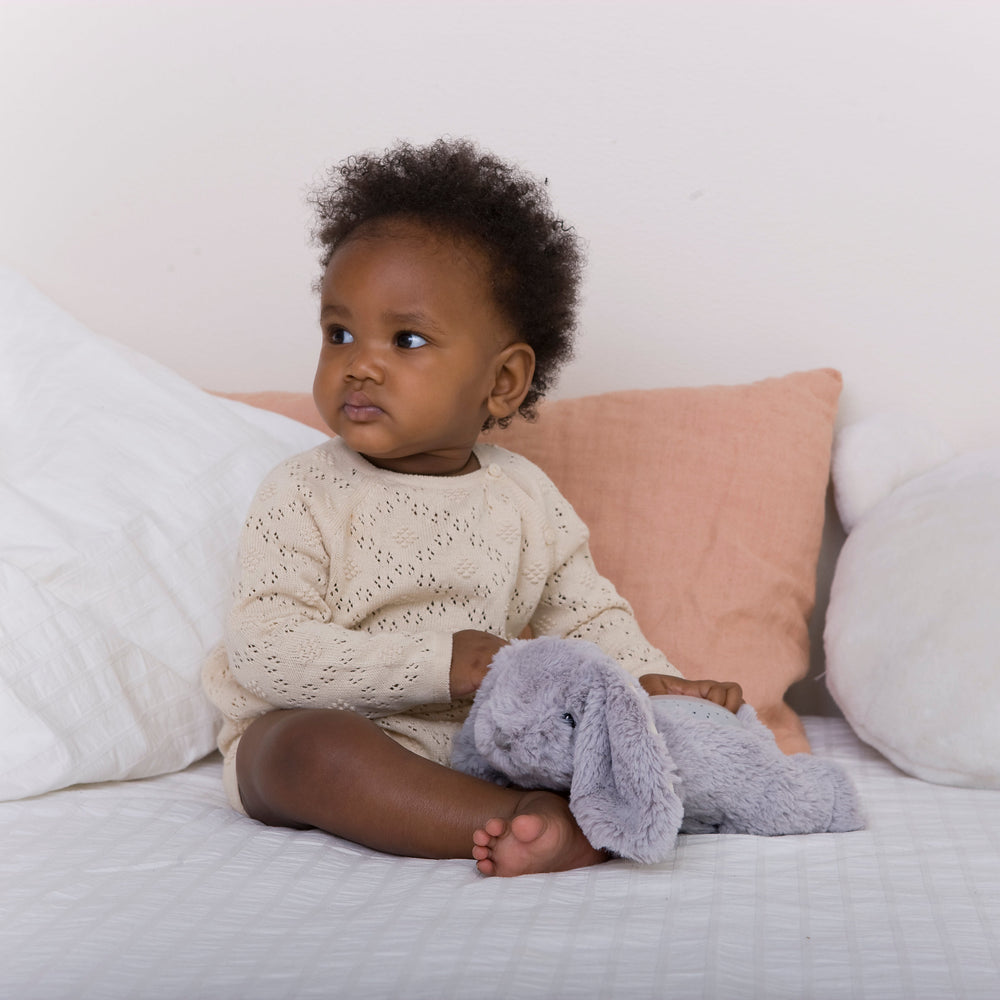 Dream Buddies™ – Benny le Lapin est un compagnon compact et ultra-doux qui projete un ciel étoilé sur les plafonds et les murs de la chambre de l’enfant.