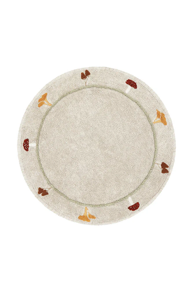 Un tapis en coton doux, formé de deux charmants champignons – un grand, un petit. Il est tissé avec le coton naturel le plus doux dans des tons Chestnut et Olive. Des rangées de touffes légèrement plus longues et des tresses ajoutées en bas ajoutent un charme supplémentaire à ce ravissant tapis.