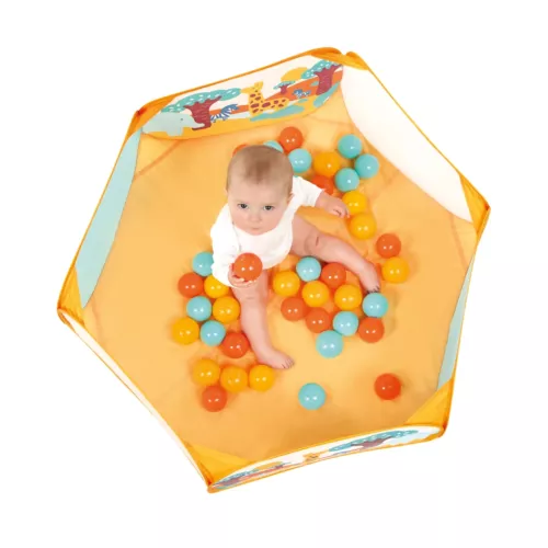 Piscine à balles octogonale pop-up LUDI avec 40 balles, idéale dès 6 mois pour créer un espace de jeu sécurisé, stimuler la motricité et l’imagination, facile à plier, transporter et ranger.