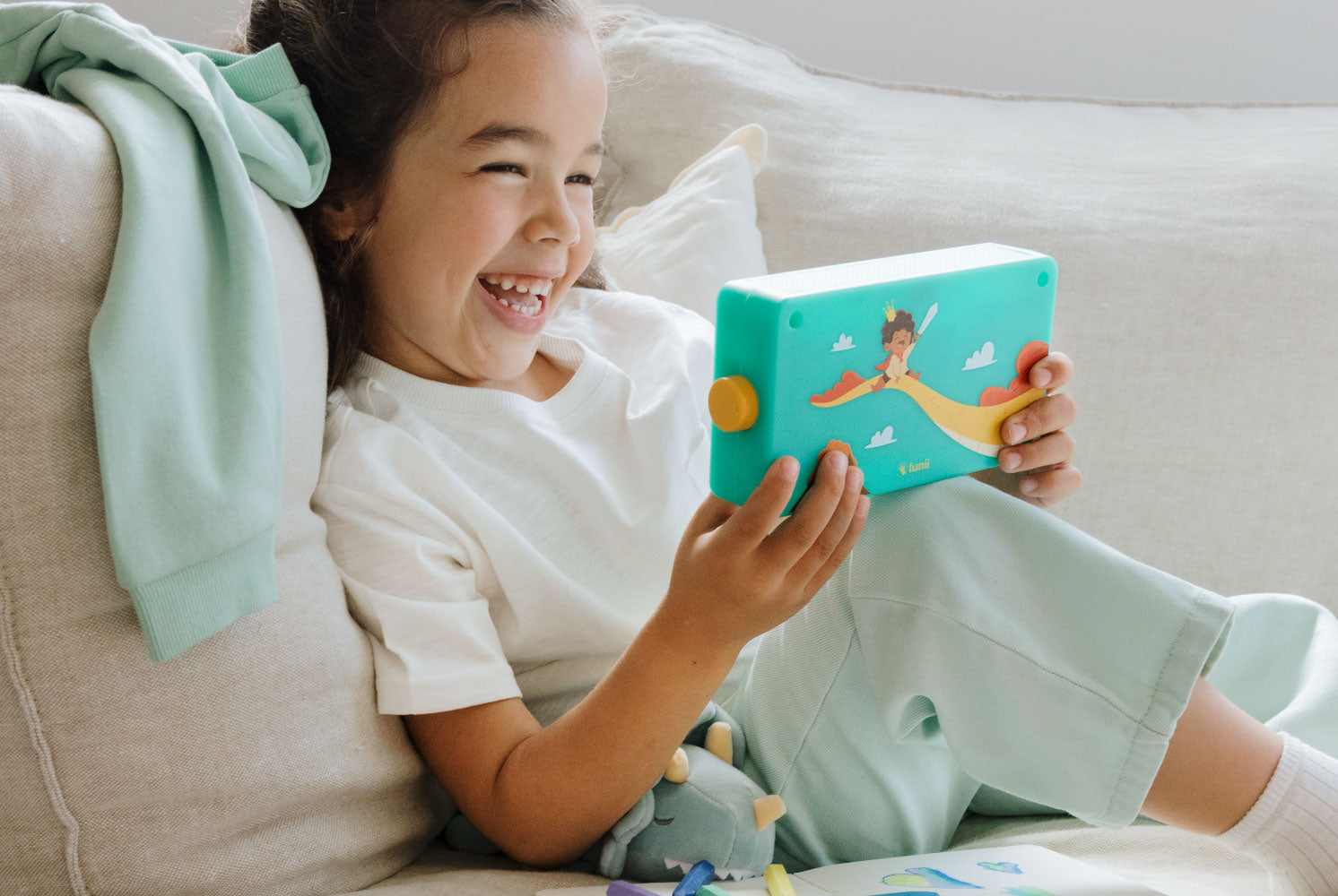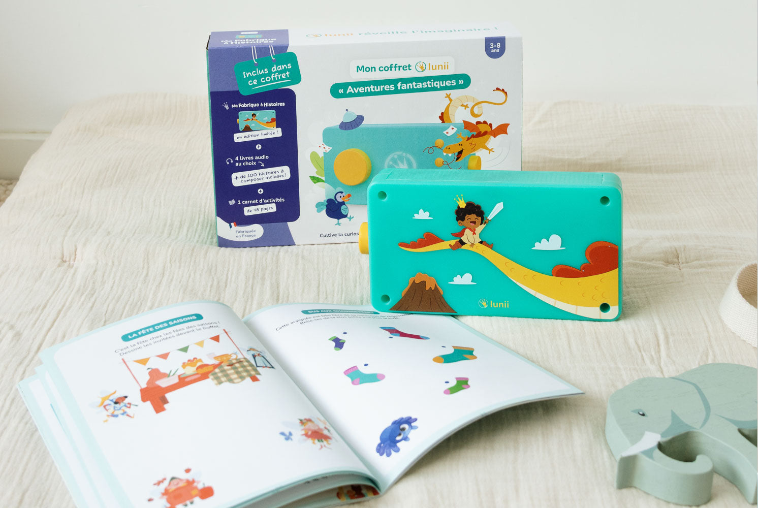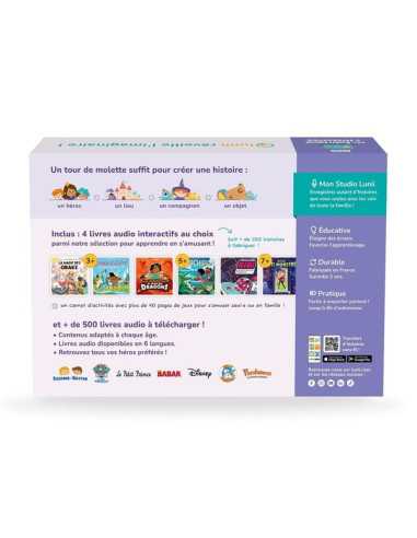 Plongez dans des récits extraordinaires où l’imagination n’a pas de limites ! Ce coffret comprend une conteuse Lunii au design inédit, 4 livres audio au choix (soit plus de 100 histoires interactives) et un carnet d’activités. Le coffret idéal pour développer la créativité et l’imaginaire de votre enfant, tout en l’éloignant des écrans.