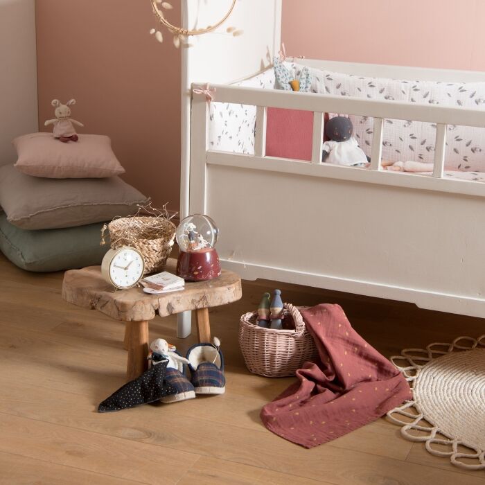 Bien installé dans son joli landau en osier, le poupon de l’enfant sera ravi de l’accompagner pour une promenade sous le soleil.