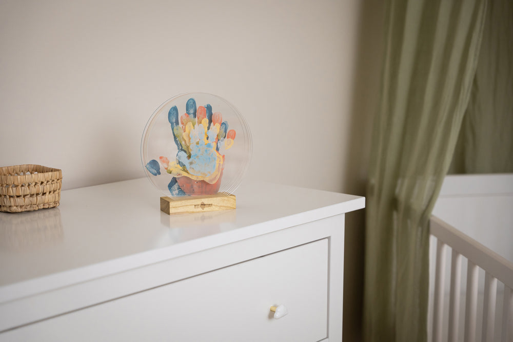 Le Family Colors est un cadre décoratif qui permet d’exposer par jeu de transparence les empreintes de 5 membres d’une famille, créant une œuvre d’art unique.