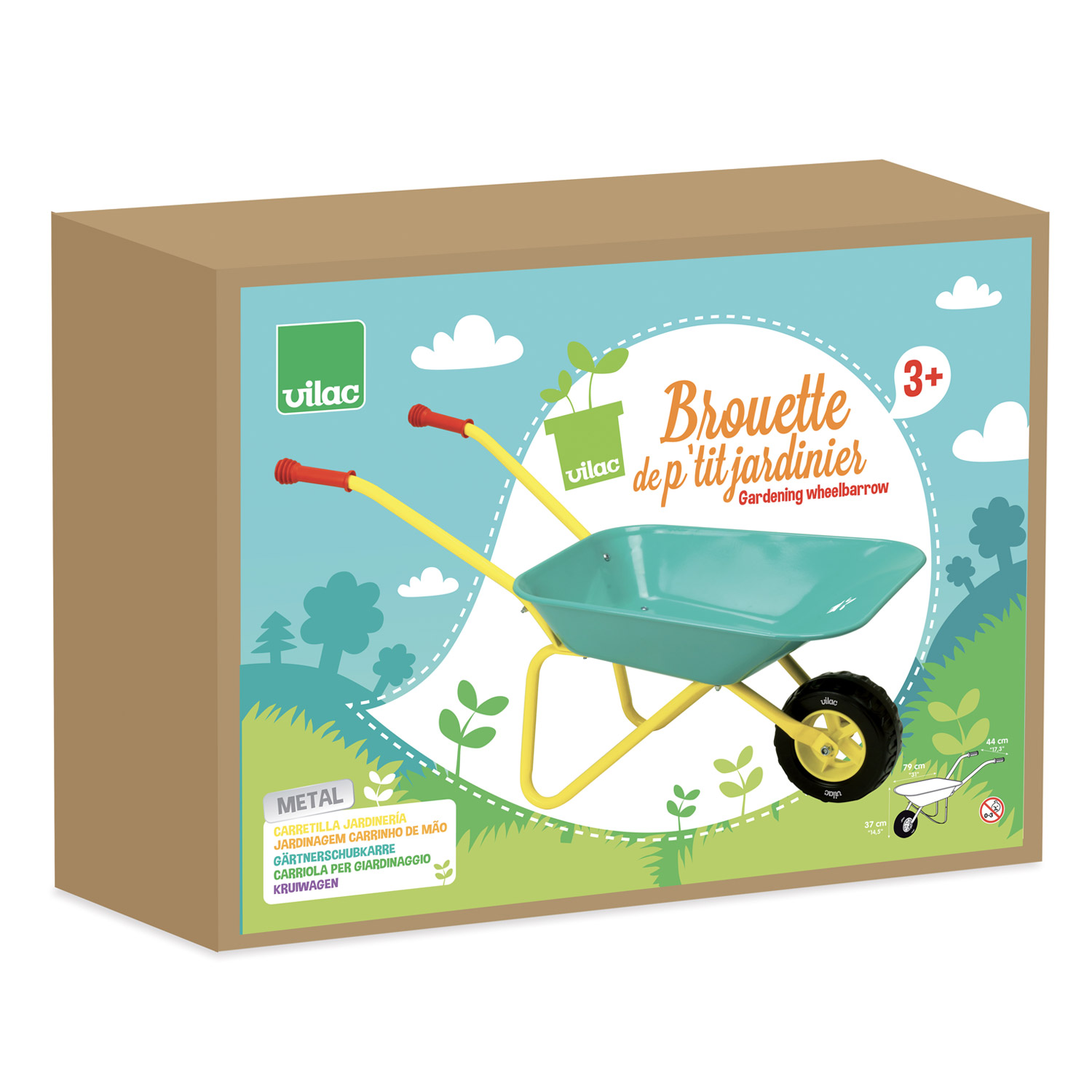 Cette brouette, spécialement conçue pour les jeunes jardiniers, est parfaite pour transporter des trésors du jardin, des jouets, et surtout aider maman et papa à jardiner.
