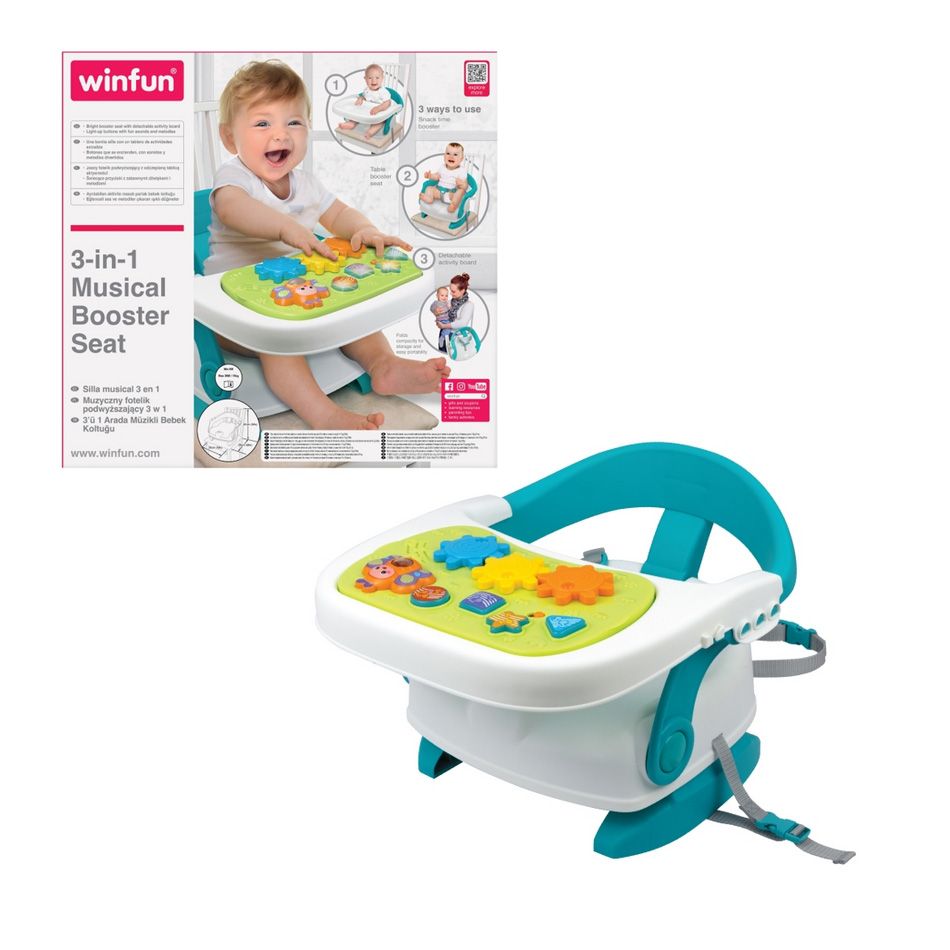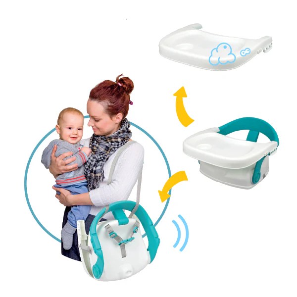 Le siège (souvent appelé rehausseur musical 3-en-1) sert à la fois de :