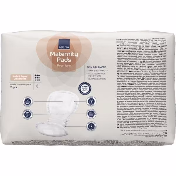 ABENA Maternity Pads est une gamme de tampons de forme anatomique pour les nouvelles mères, conçus pour les degrés légers à lourds d’incontinence postnatale. La longueur et la largeur des tampons donnent aux utilisateurs une sensation de sécurité, et le ruban adhésif sur le dos garantit que le tampon reste en place.