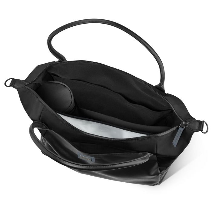 Sac à langer bandoulière noir uni Genève Béaba avec matelas à langer, pochette à tétine et pochette repas isotherme.