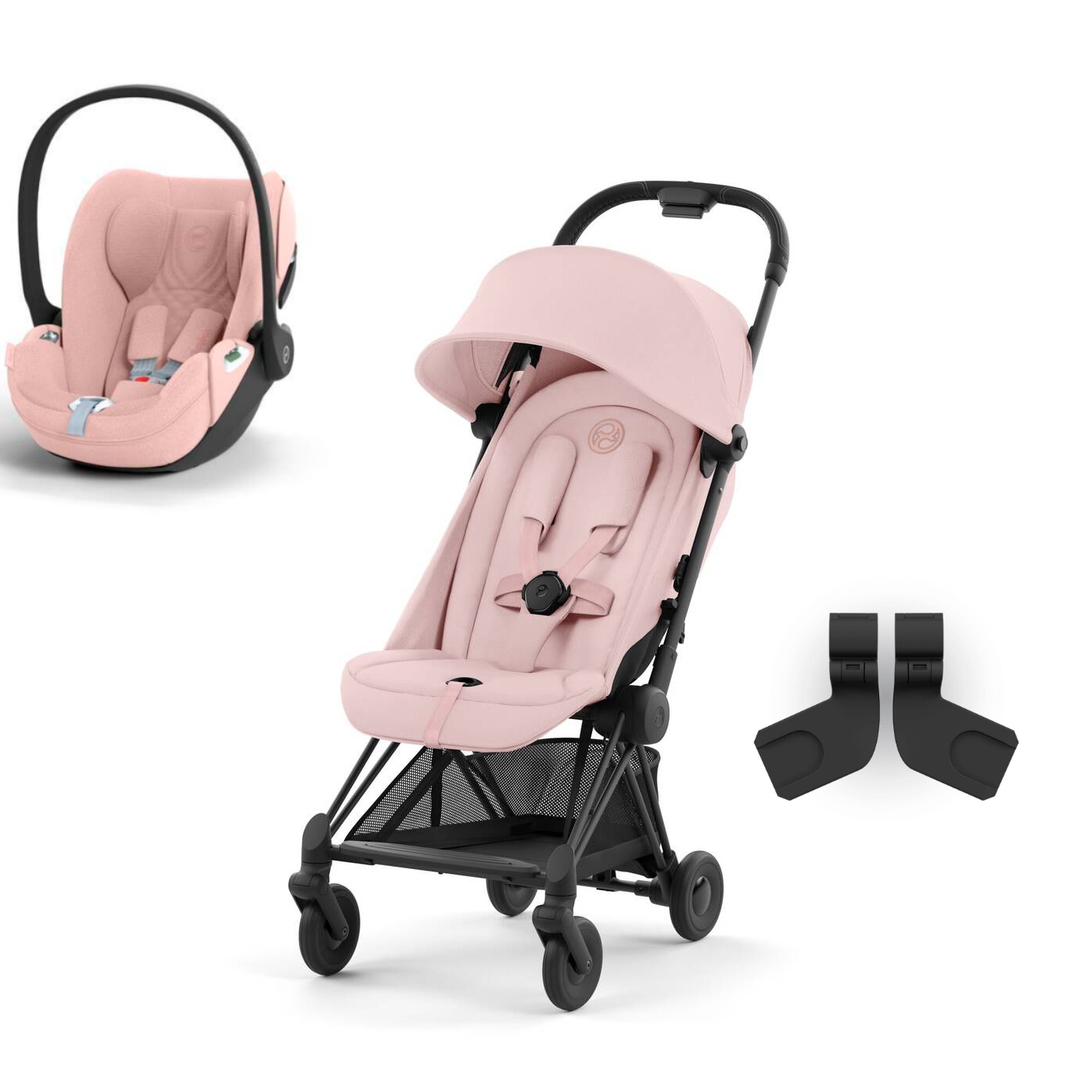 Pack Cybex Coya Matt Black / Pink + Adaptateur + Cloud T i-Size Pink