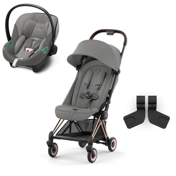 🍼 Pack CYBEX Coya Rose Gold / Grey + Adaptateurs + Aton B2 i-Size Grey