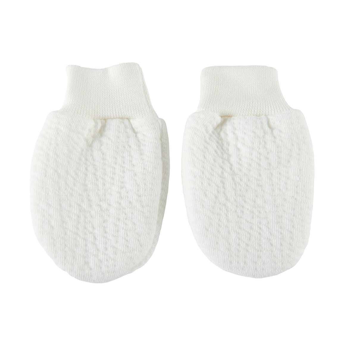 Moufles pour bébé en jersey gaufré Ivoire. Parfait pour la maternité et les premiers jours de bébé. Taille unique.